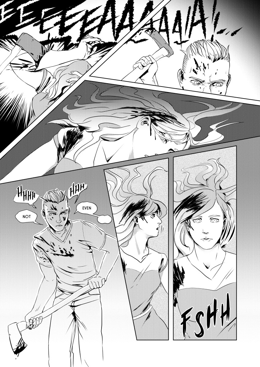 One boob continually got me in trouble. This page did not. There's much more violence than sex in Black Peak, but I only ever got push back on the sex, as dry as it is.