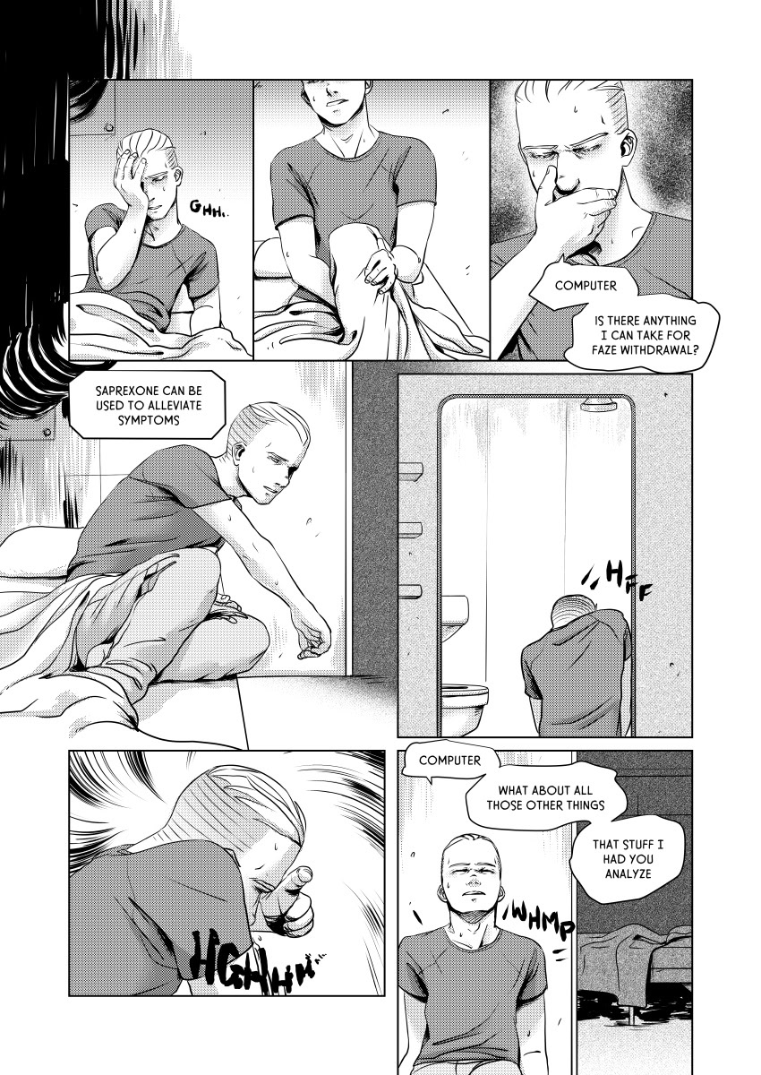 Don't let the well-placed sheets fool you. Pryce is in the bed with his shoes on, like an animal. You can think I planned this around his withdrawal symptoms kicking in so he's simply not fully sensible, but the truth is that's my convenient excuse to hide that I forgot he isn't in an RPG game, where everyone sleeps on top of the bed in full gear.